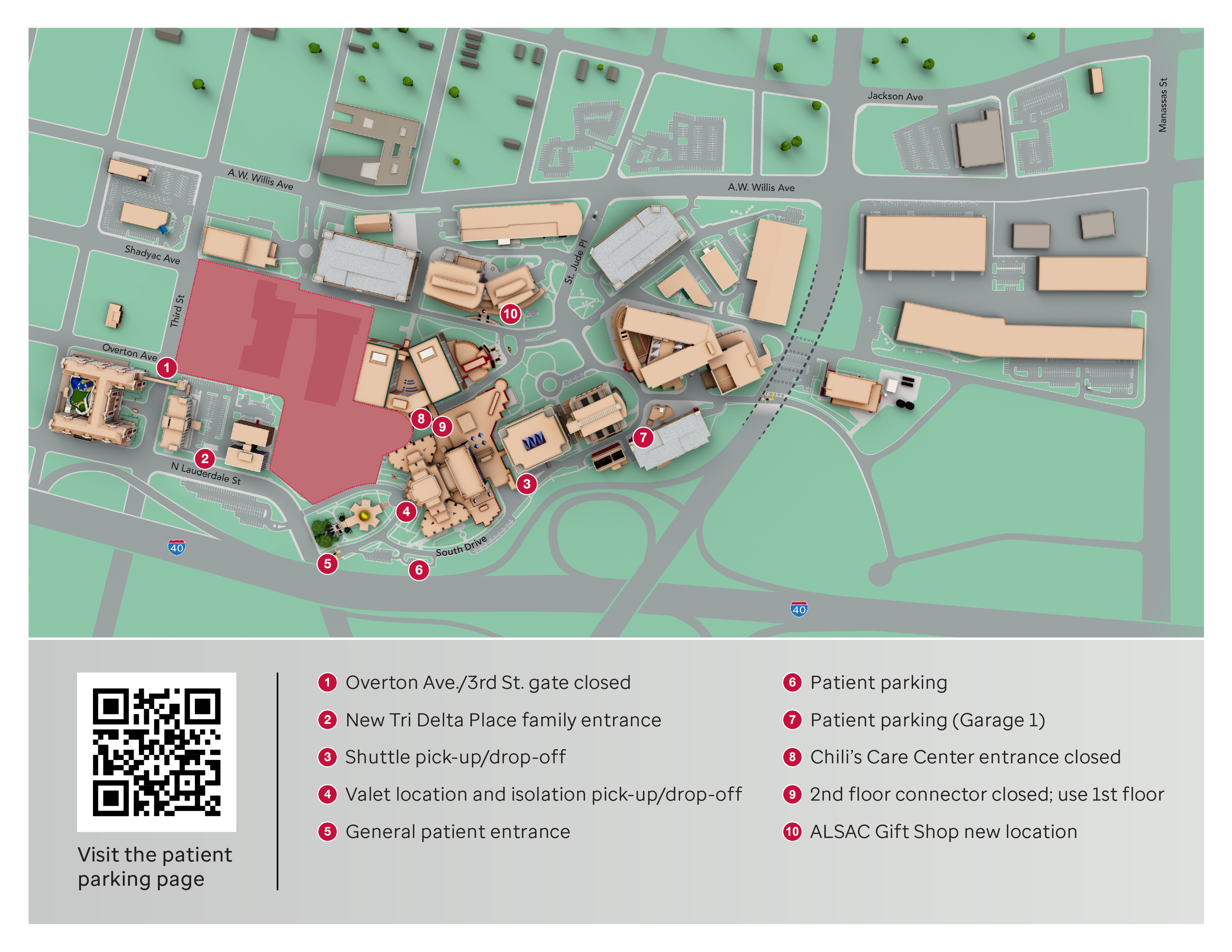 Details about parking and construction are also offered on the Our St. Jude Patient app.